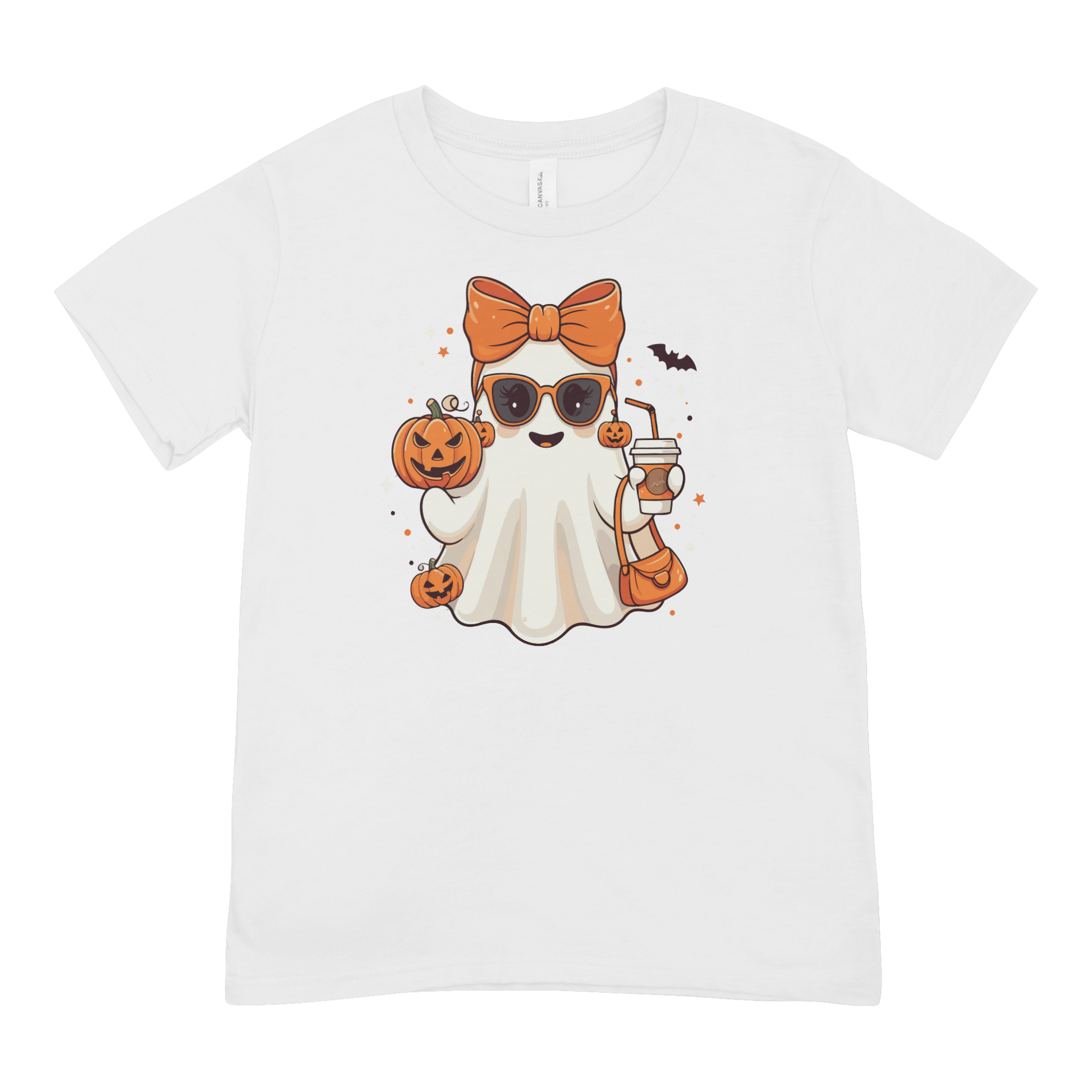 Turn spooky season into a fashion statement with our Boujee Ghost Tee 👻☕. Featuring a stylish ghost with shades, pumpkins, and a latte, this tee is perfect for coffee lovers and trendsetters who want a cute Halloween look.